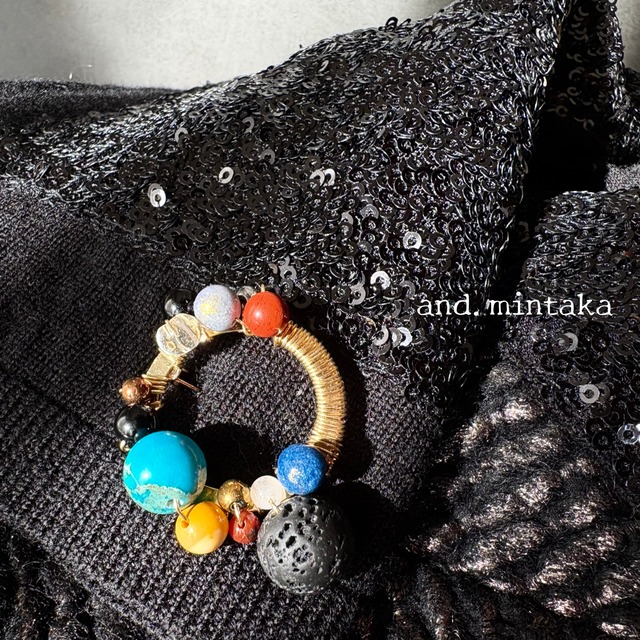 カラフルプラネット☆天然石を散りばめた宇宙みたいなブローチ⭐︎スカーフ・ストール・帽子・バッグ・ポーチにも