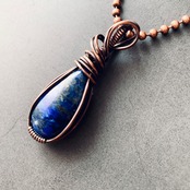 【一点物・9月12月誕生石】天然石ラピスラズリ 星空みたいなペンダントトップ コッパーワイヤーラッピングシリーズ②
