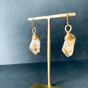 【11月誕生石/一点物】ポジティブなパワーの天然石シトリン⭐︎シンプルで上品 大ぶりフックピアス/真鍮ワイヤーラッピング