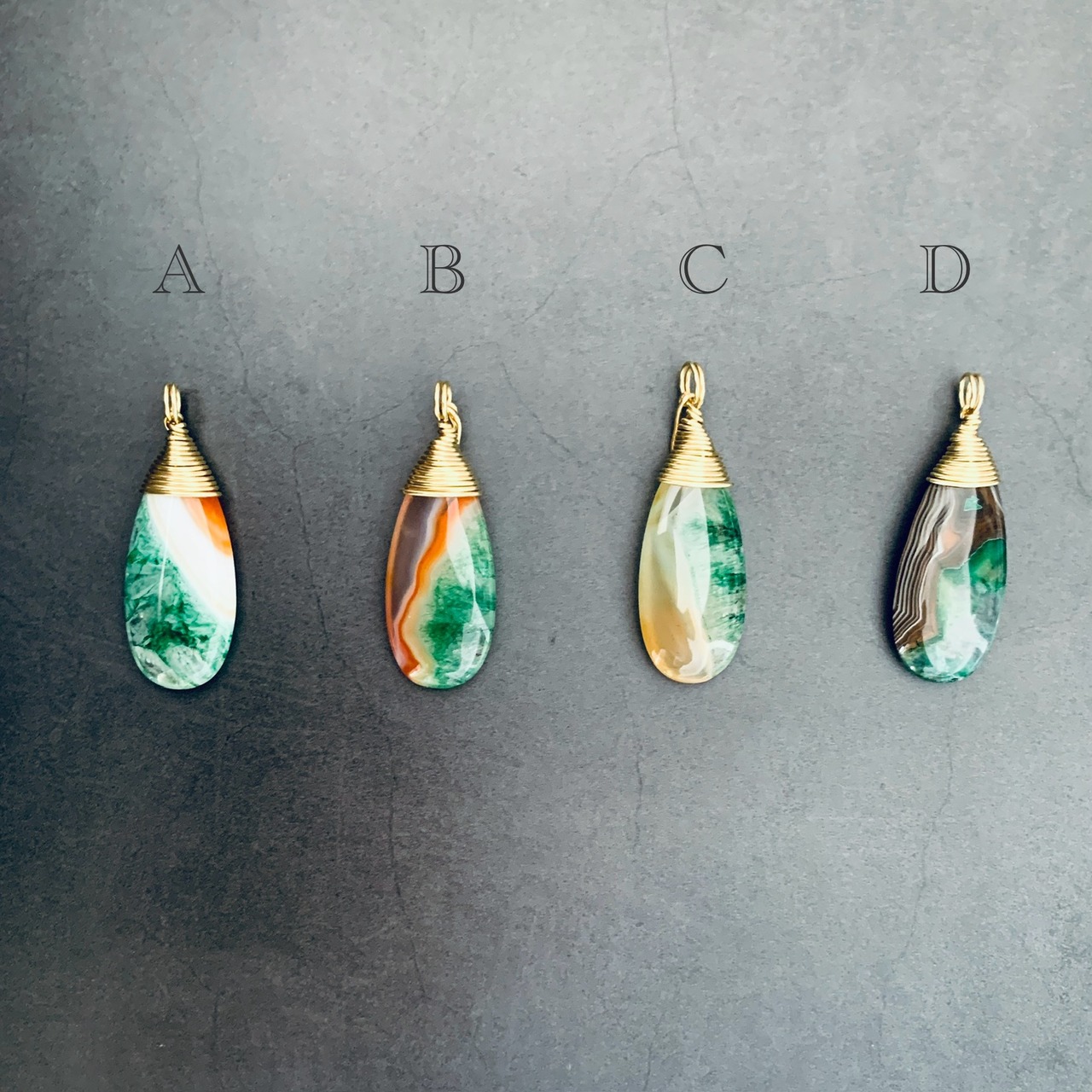 グラデーションが美しいティアドロップ型のアゲート(瑪瑙)をペンダントにしました。大ぶりでインパクトあるペンダントトップです。